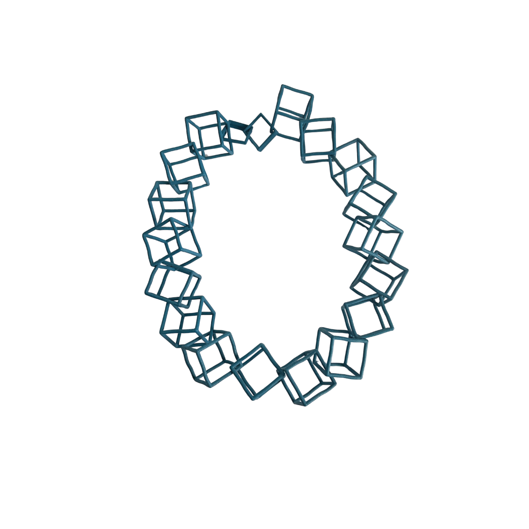 3D printed Cubetti Chain 03 by Italian designer Monica Castiglioni. A sculptural piece of jewelry beautifully printed in a celestial blue color. These are from an early project Monica did and are the last stock available.