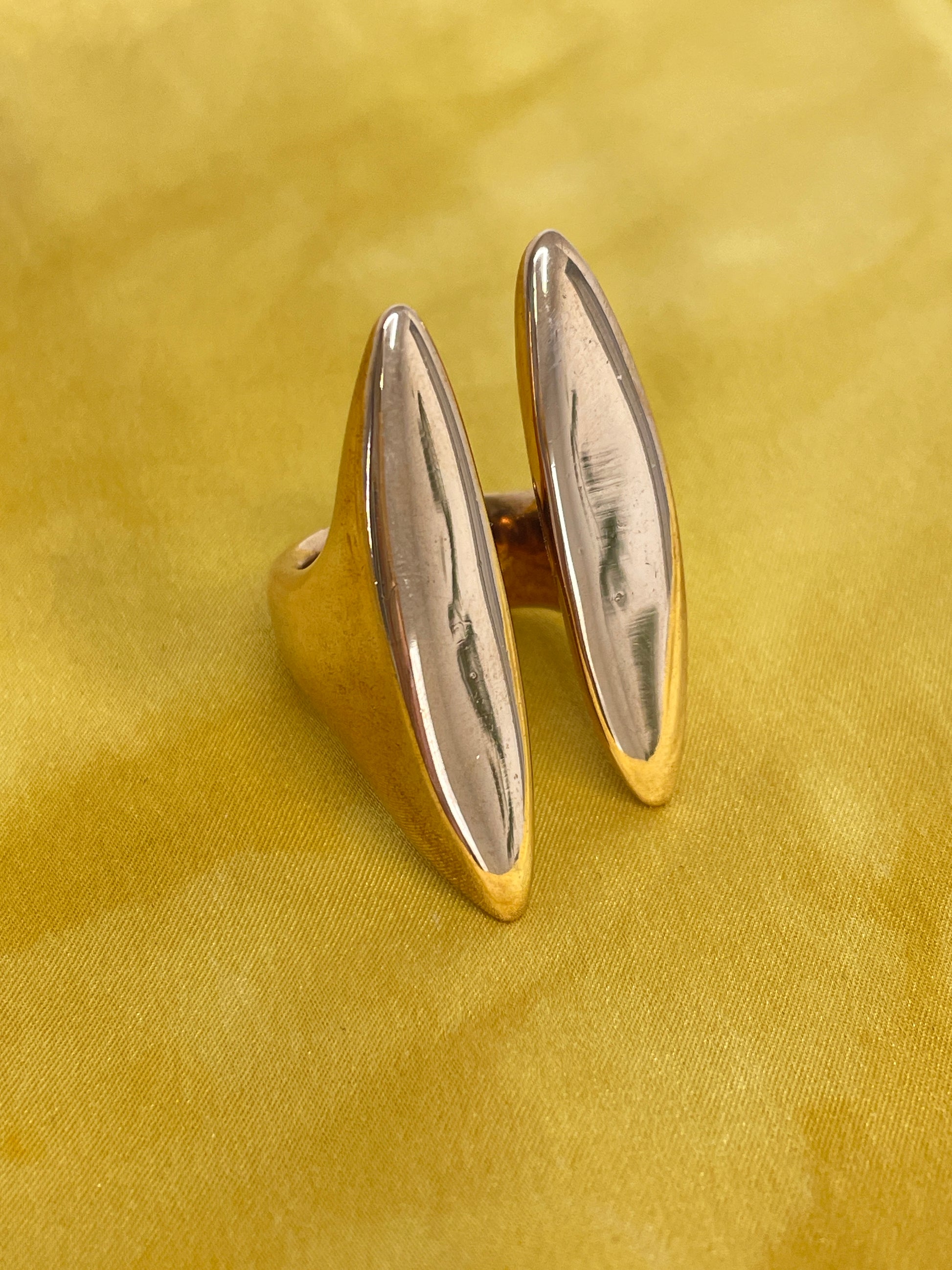 Pino 16A ring by Italian designer Monica Castiglioni. A sculptural piece of jewelry hand cast in bronze. Available in size 7 and 9. (Due to the design, sizes are forgiving in both directions.)