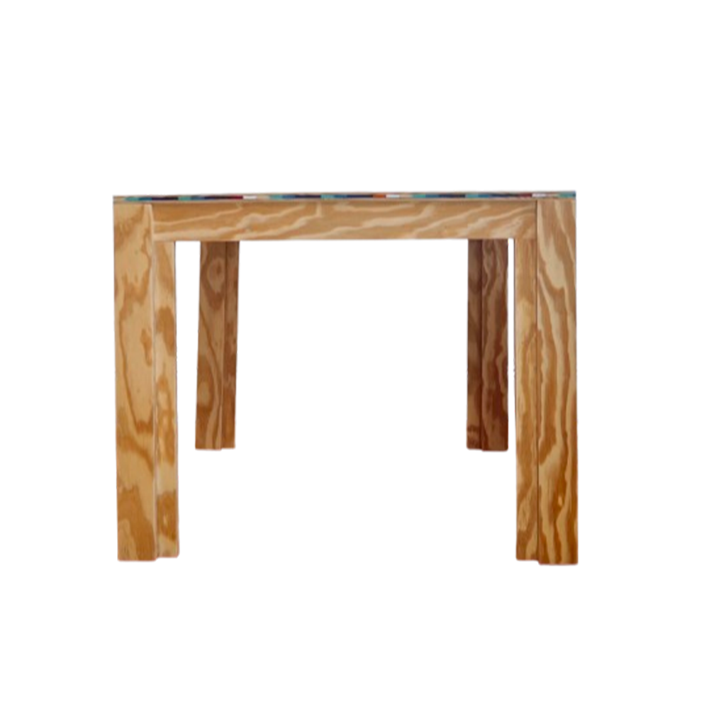 'Genius Diner' dining table by Outgoing. Made of plywood with inlay plexiglass pattern, felt, hardware, and oil finish.
